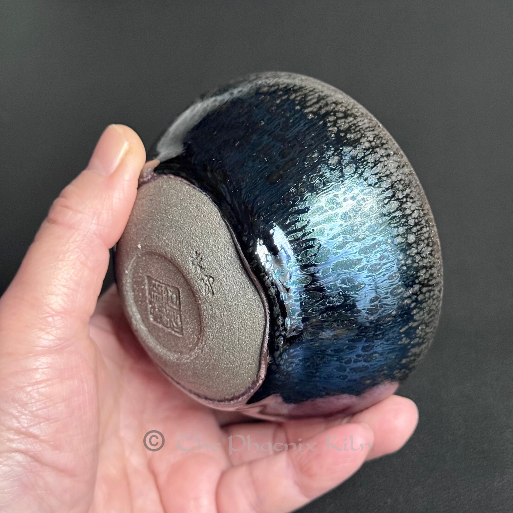 Formed in the open flame of the dragon kiln, this Aurora Cascade carries a restrained yōhen that does not reveal itself all at once. Its hidden iridescence responds to light with quiet shifts of color and depth—changes that appear most vividly in sunlight or bright, open spaces.