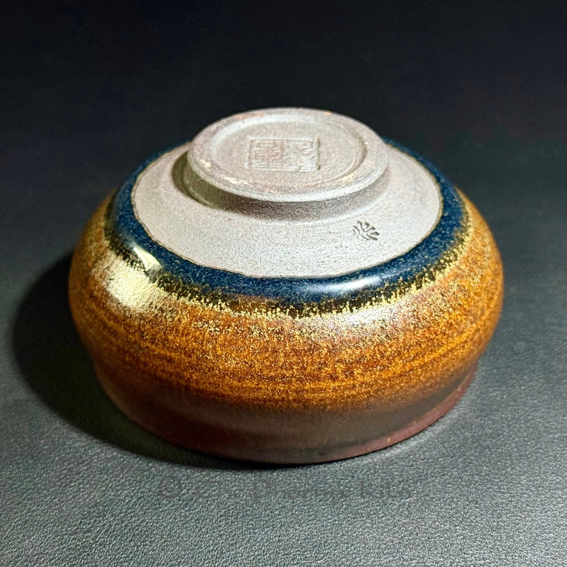 Indigo Heart captures one of the rarest effects born from the Skyward Dragon Kiln—an indigo core emerging from the fusion of iron glaze and wood ash. The transition from bronze-gold to deep blue recalls the moment when fire, having ascended through the kiln’s rising chambers, gathers its light and returns to stillness.