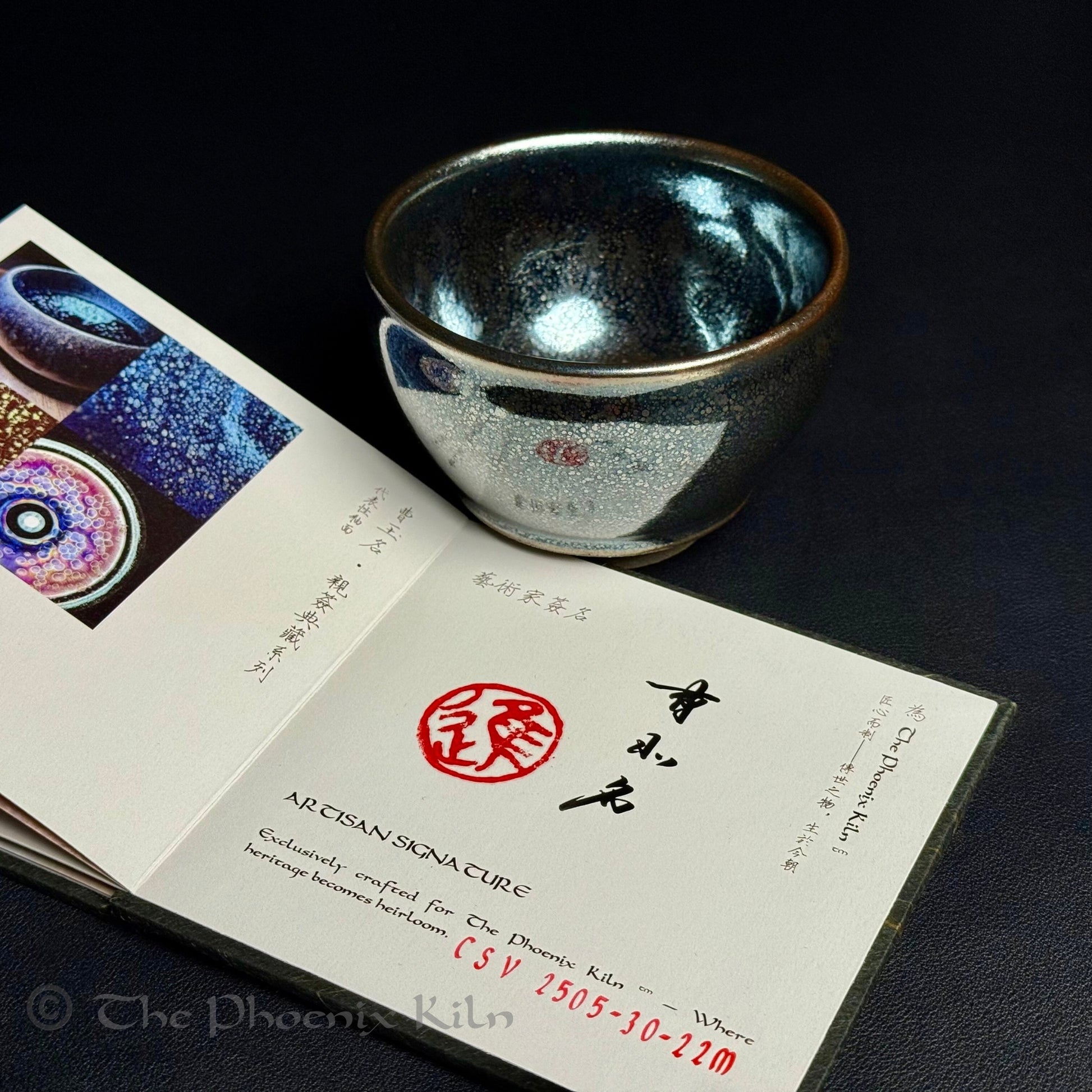 A classic Starveil Jian Zhan showcasing TPK Exclusive glaze development, featuring the series’ characteristic crystalline surface and offering a refined entry into The Phoenix Kiln’s collector-grade works.
